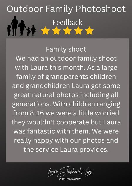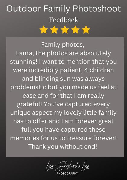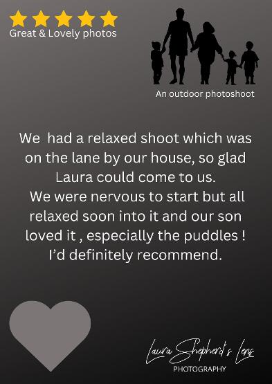 THANKYOU LAURA FOR TAKING SOME BRILLIANT PHOTOS OF OUR DAUGHTER, VERY RELAXED HOME ENVIRONMENT, VERY WELCOMING, LOVELY LADY , WORTH EVERY PENNY , WILL BE DEFINITELY BE HAVING SOME MORE FAMILY PHOTOS IN THE FUTURE , LOVED THIS MINI SCHOOL SESSION....BY EMILY.