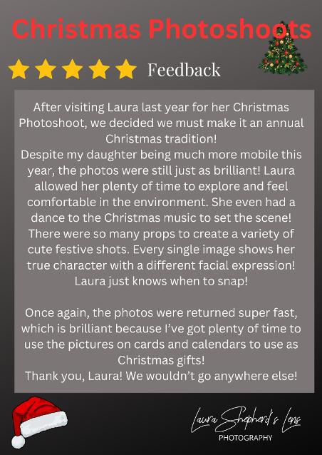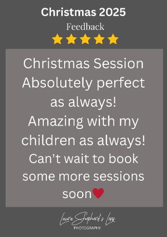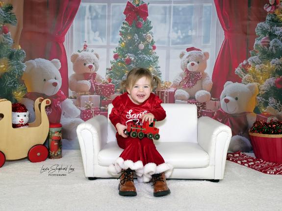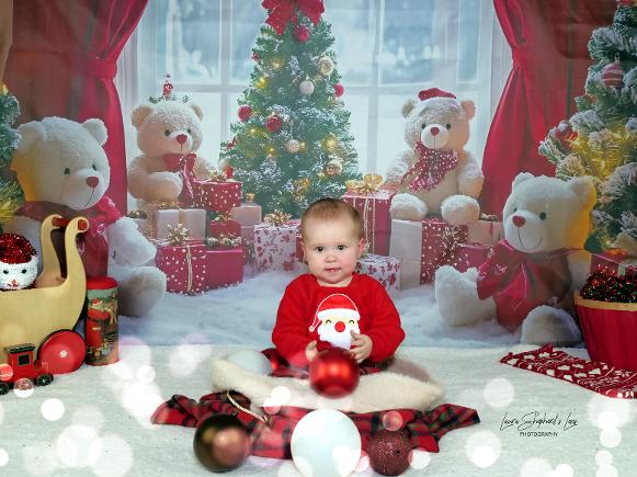 Based on sitting up age and appropriate props. Limited space so please check with me. Emphasis on festive fun not perfect photos. Capturing your little ones characters this Christmas time. A cosy home experience suited to shy or anxious children. No queues or clock watching. A relaxing environment. A new backdrop every year. Make memories !