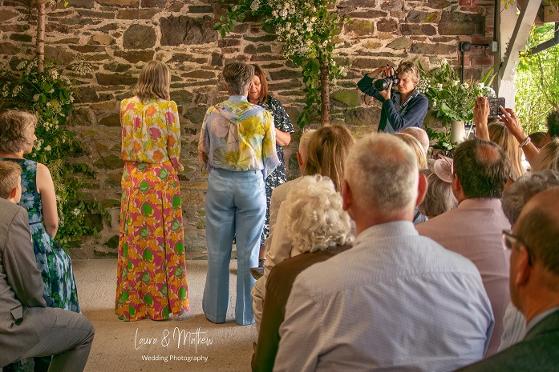 Laura photographing at the front of the ceremony as Mathew works at the back.