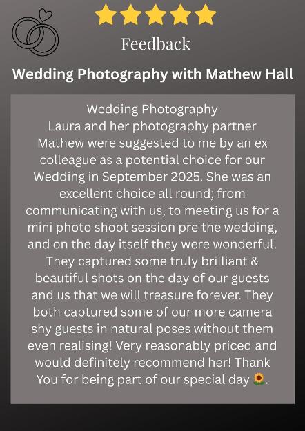 Thank you to all our couples who have allowed us to show a few of their images online . We appreciate some people prefer privacy. Thank you to those of you who have taken the time to give us lovely feedback.